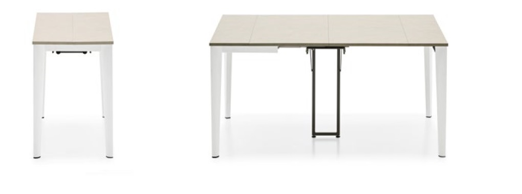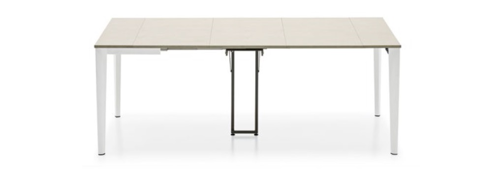 Con un semplice movimento, la consolle Artic passa da un tavolino grande come una mensola, a un ampio tavolo che può ospitare 6 persone o anche 12. L’ideale è abbinare delle sedie pieghevoli che possono così essere riposte in poco spazio, lasciano la tua casa più vivibile quando non viene usato il tavolo allungabile.